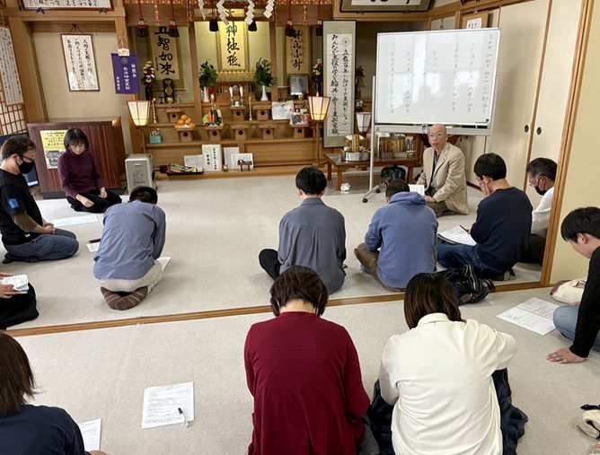 今回の勉強会のテーマは「感謝日」。全員でのお浄めの後、今庄和子支部長より、「感謝日の意味と参加することの意義」についてのご講話を頂きました。支部長のお話を通して、目には見えずとも日々「お蔭さま」によって生かされていることへの感謝と、当番にあたっては「させて頂きます」という“奉仕の心”が大切であることを改めて学ばせていただきました。